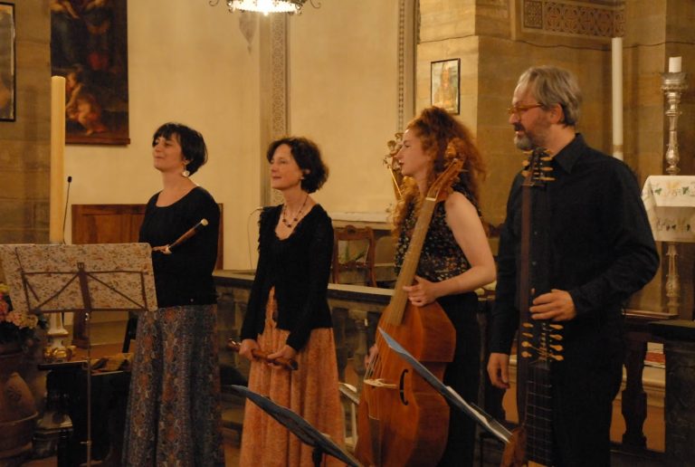 Caterina, une amie italienne qui m’est très chère, m’envoie il y a quelques temps les photos d’un concert que j’ai fait avec trois autres musiciens en Italie en avril 2022, en hommage à Ariane Maurette. Ariane a vécu sept ans en Toscane, quand elle est arrivée elle jouait encore la viole mais, petit à petit, elle a perdu l’usage de son corps et une maladie neuro-dégénérative rare a été diagnostiquée.